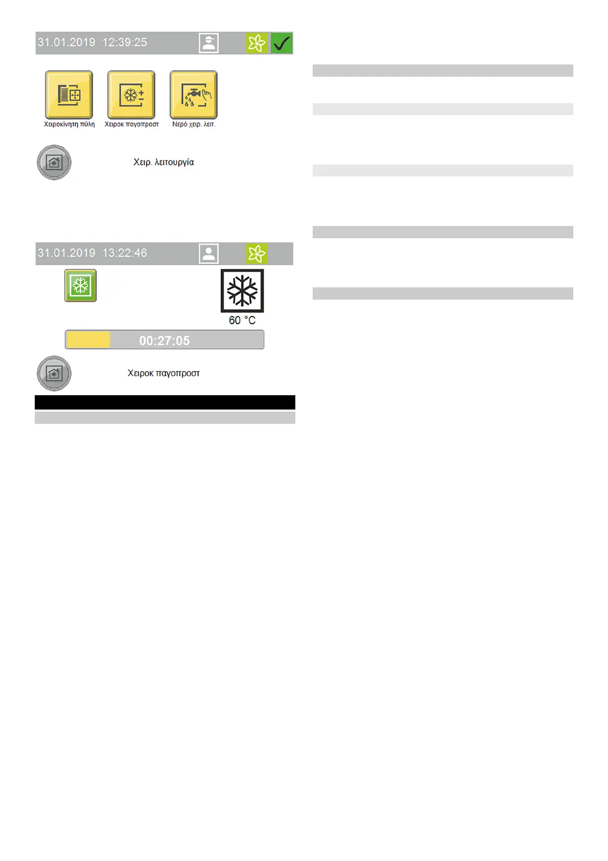Η χειροκίνητη λειτουργία εκτελείται στην οθόνη.
