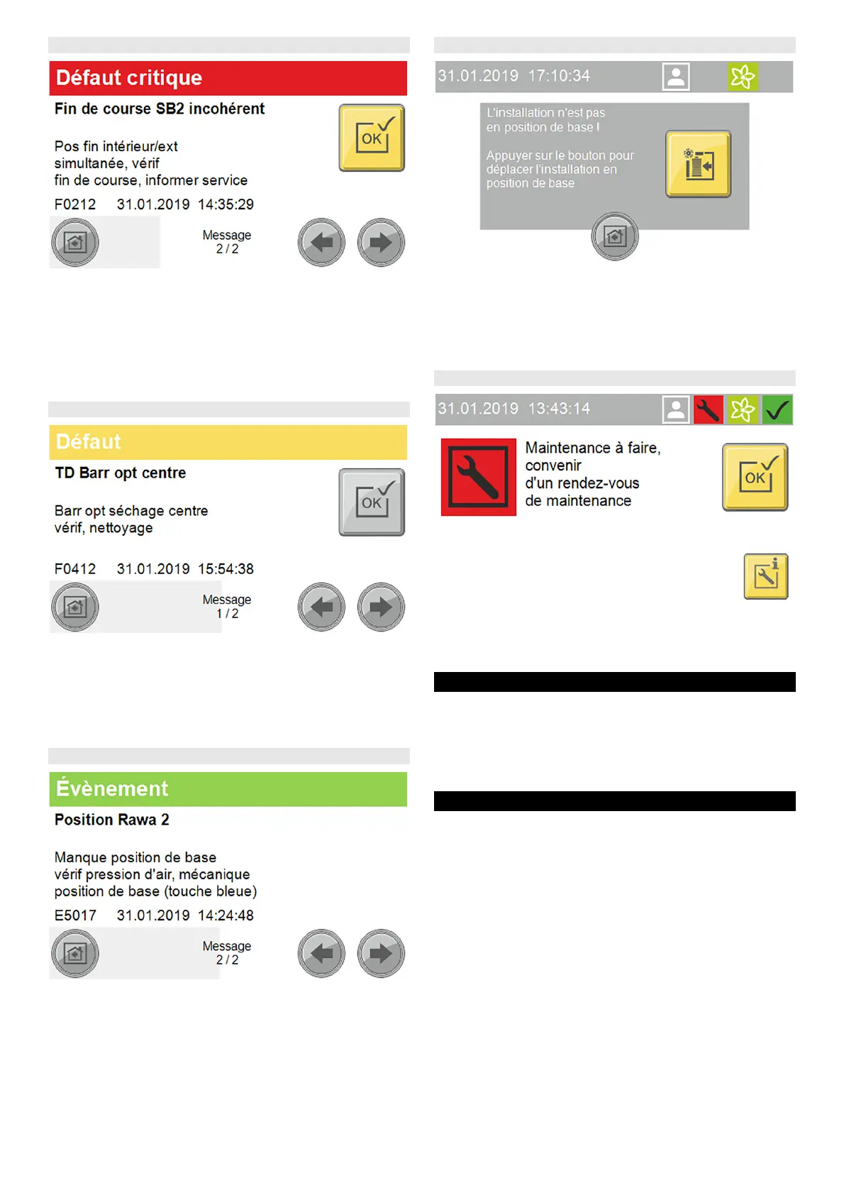 Si plusieurs défauts sont présents, ils sont affichés à la suite.