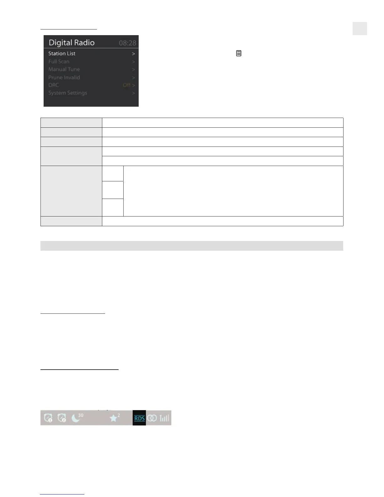 While in DAB+ mode you can enter the Digital Radio menu by