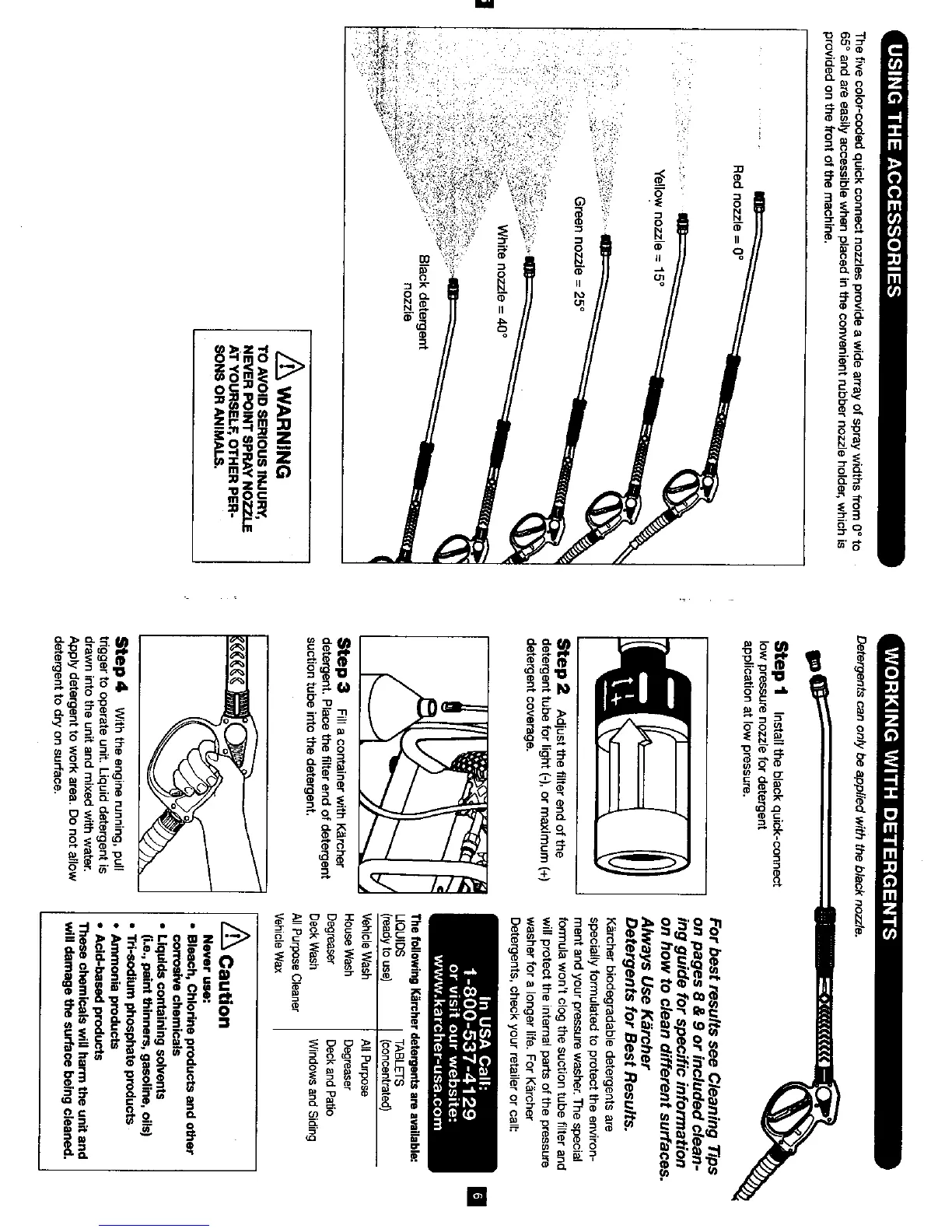Kärcher HD 2701 - Using Accessories; Quick Connect Nozzle Guide; Working with Detergents; Detergent Application Process