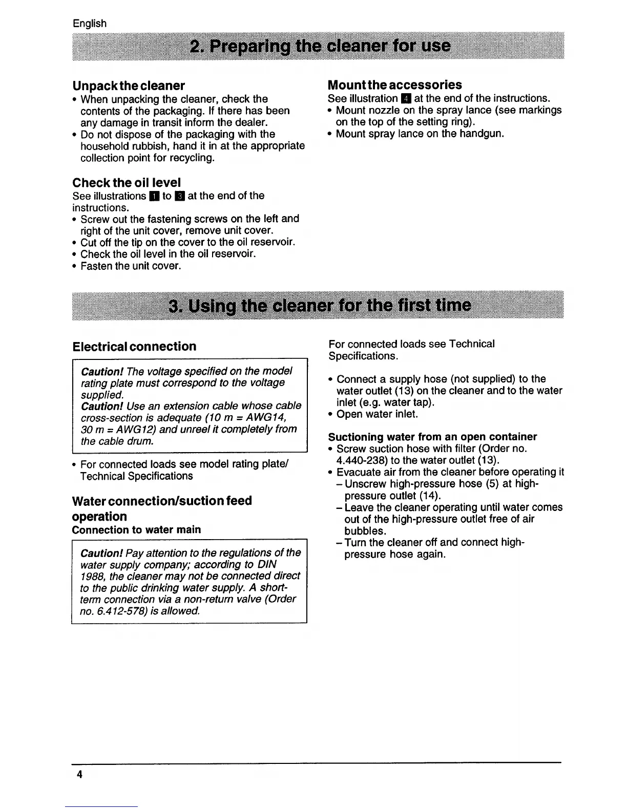 Kärcher HD 655 H - Preparing the Cleaner for Use; Preparation Steps; Electrical and Water Connections