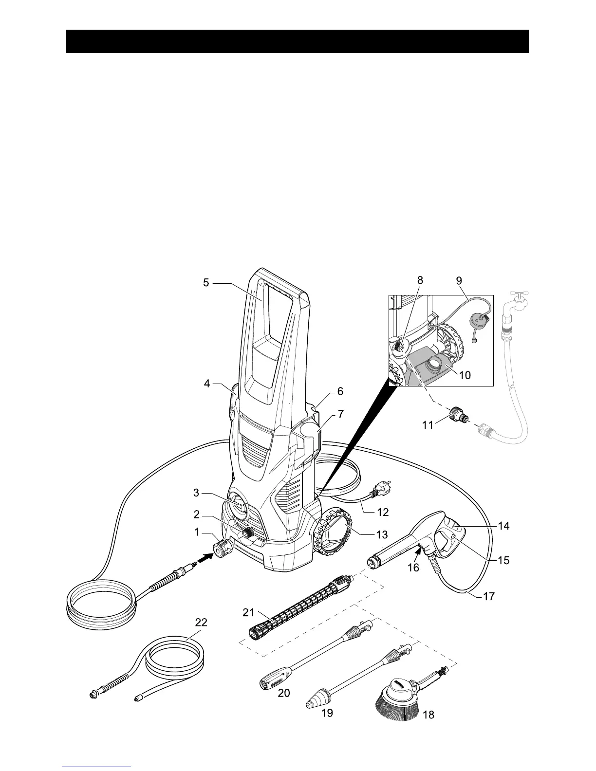 15 Key to detach the high pressure hose