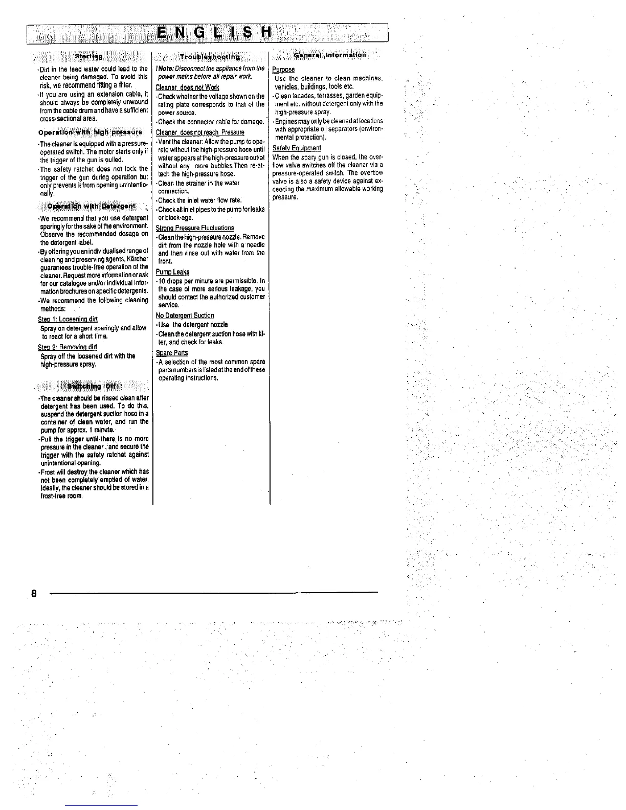 Kärcher K 210 Plus - Troubleshooting; Cleaner Does Not Work; Cleaner Does Not Reach Pressure; Strong Pressure Fluctuations