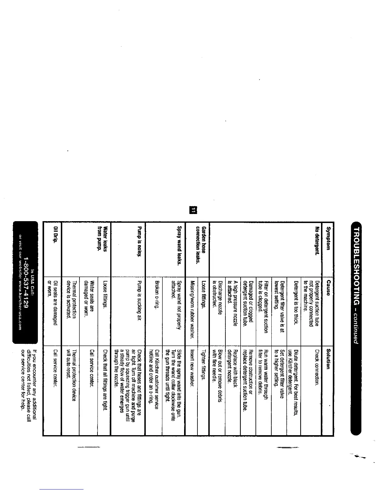 Kärcher K 2401 - Troubleshooting - Additional Problems; Detergent and Leakage Issues; Noise and Oil Leakage Problems