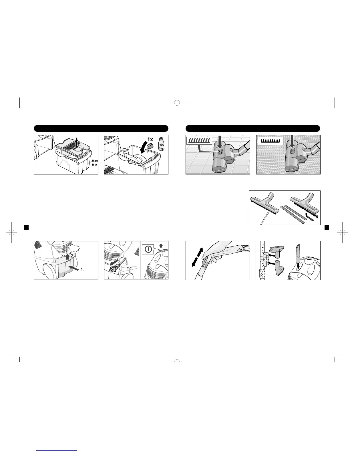 vacuumed at any time when the water filter container is full. Use the crevice nozzle or the