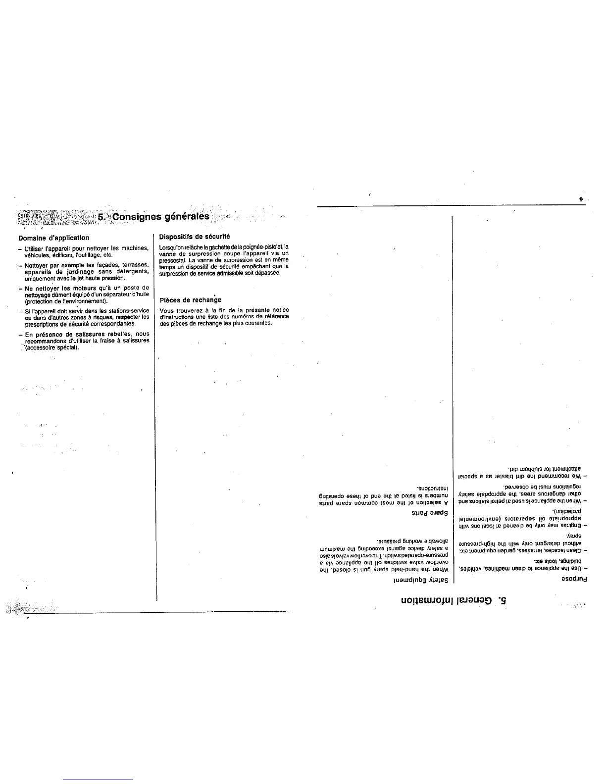 Kärcher K 620 M - General Information and Safety; Intended Use and Applications; Safety Equipment and Features; Spare Parts Reference