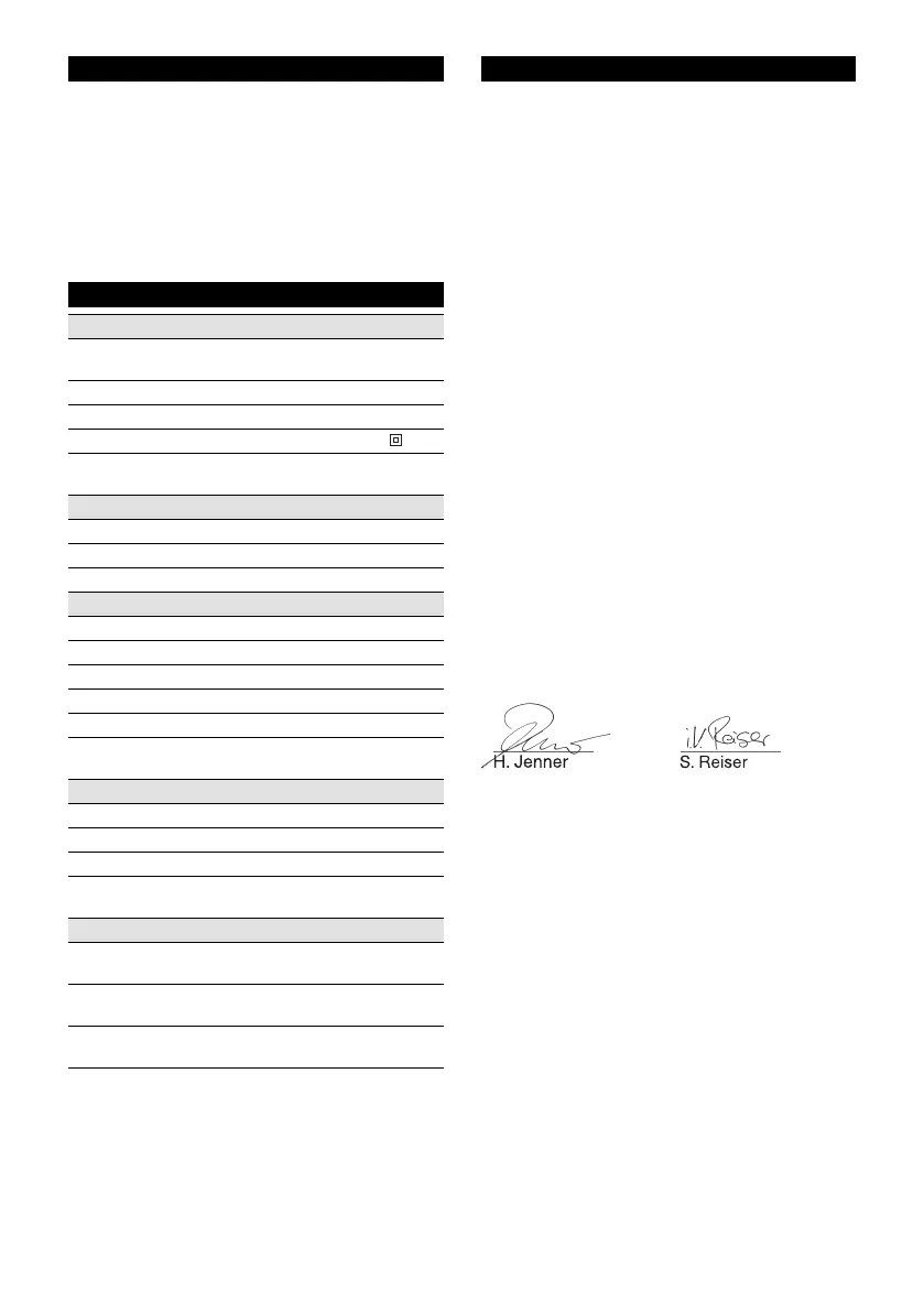 Valeurs définies selon EN 60335-2-79
