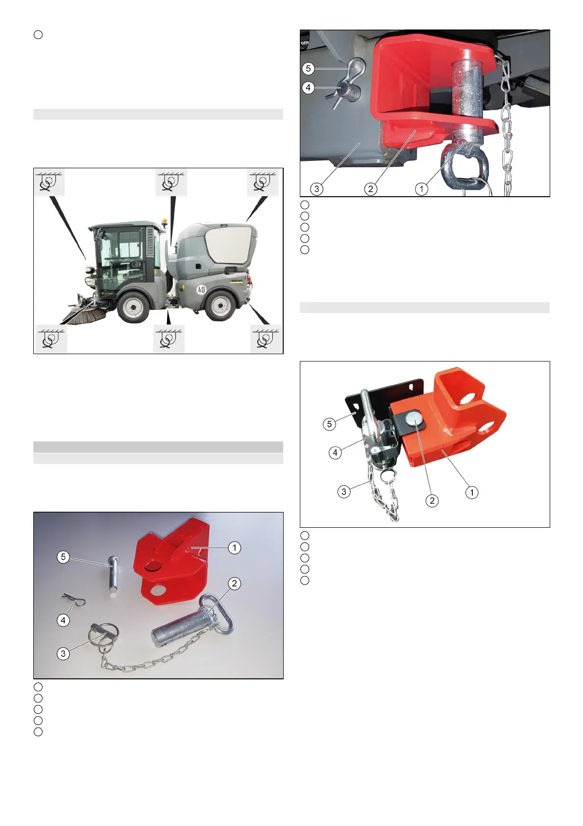 1. Rimuovere l’occhiello di traino, con perni e fermagli di fissag-