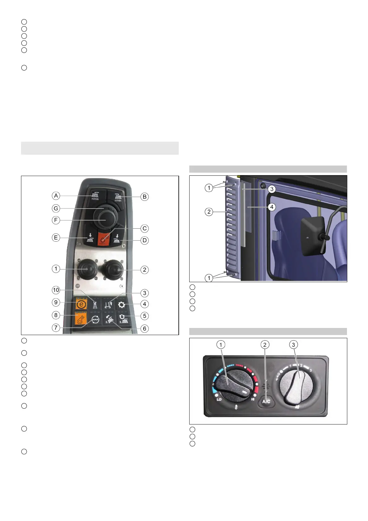 2 Baixar/levantar a vassoura lateral direita e ligar/desligar a
