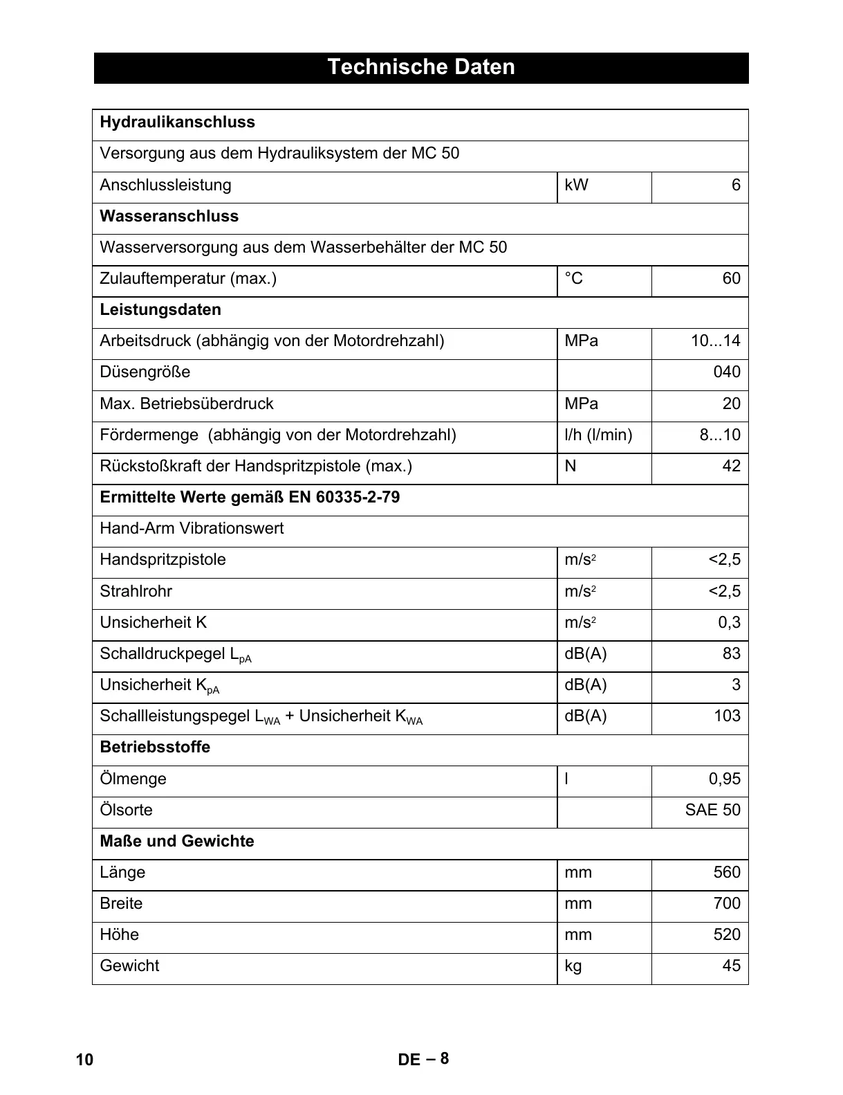 Ermittelte Werte gemäß EN 60335-2-79