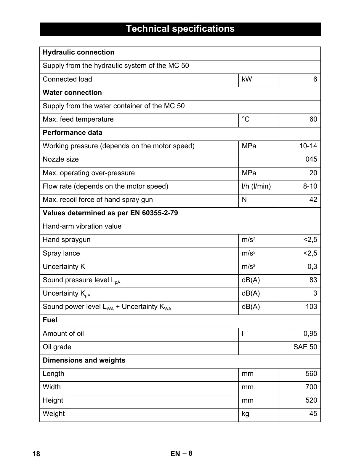 Flow rate (depends on the motor speed) l/h (l/min) 8-10