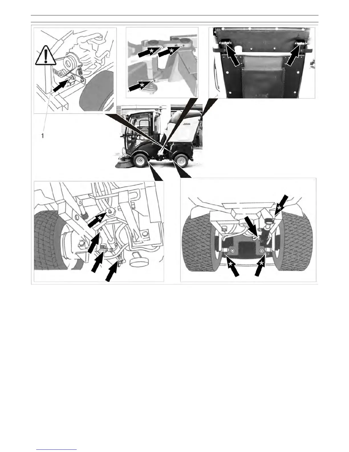 Lubricate the grease nipples marked