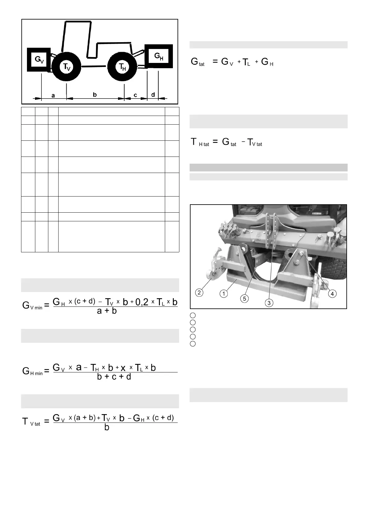 GV (kg) = Totaal gewicht frontbevestiging / voor-