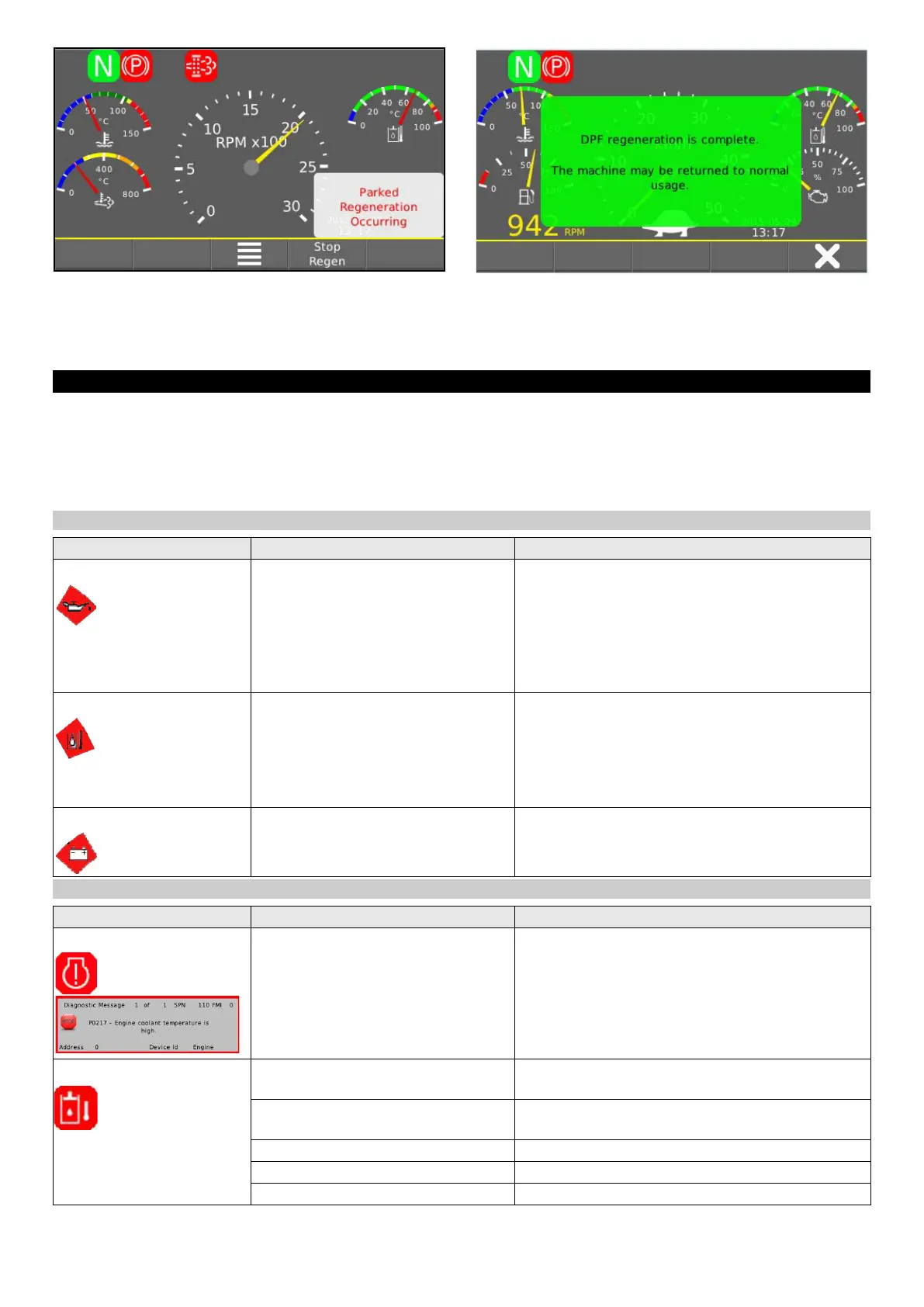 Hydraulic oil temperature too high Operate the engine in idling mixture (supply) until