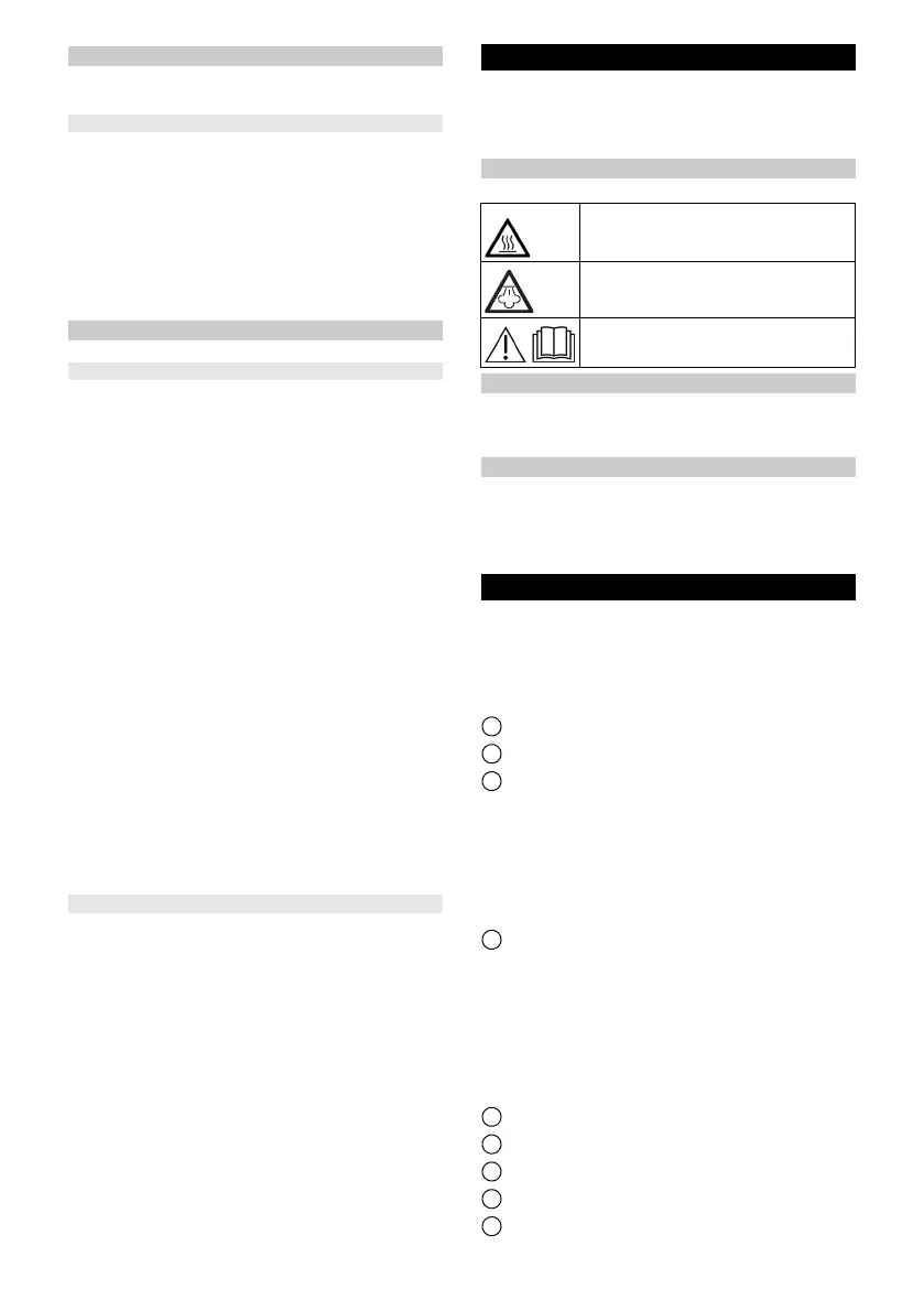 the steam jet at people or animals. ● Risk of burns on