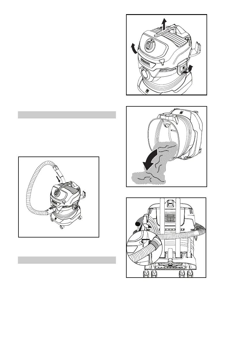 The suction hose can be wrapped around