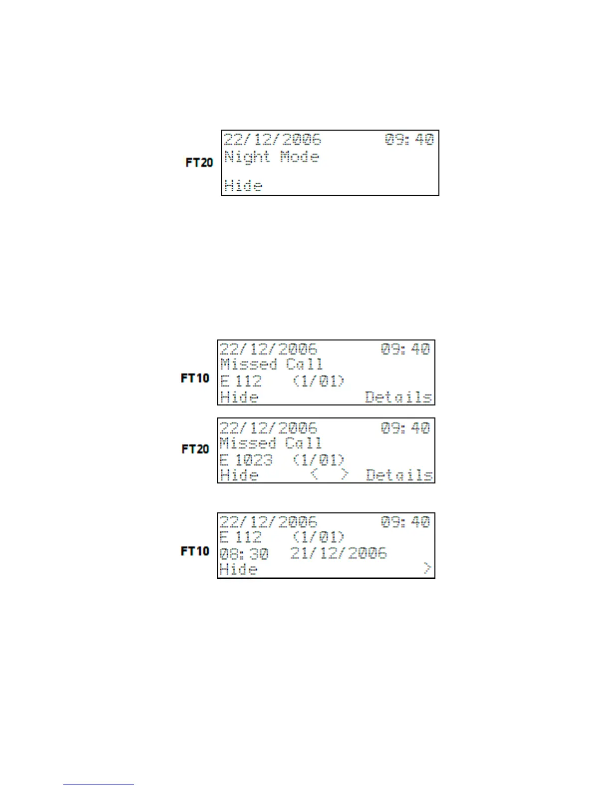 is saved in the list, 8 ones for FT10 and 20 ones for FT20. (If there are Missed Calls