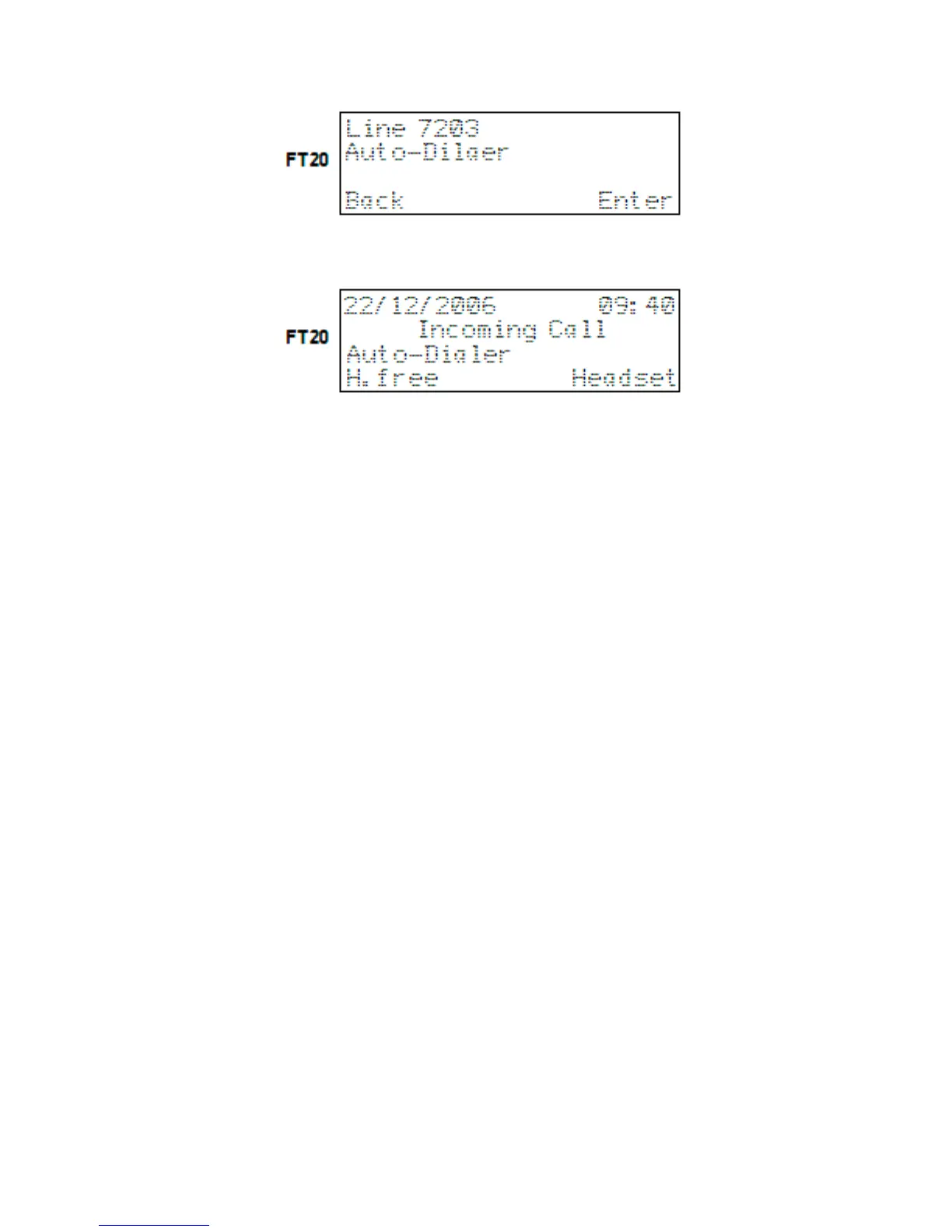 (Line number is displayed as DDDD and extension number as AAAA for FT20.)