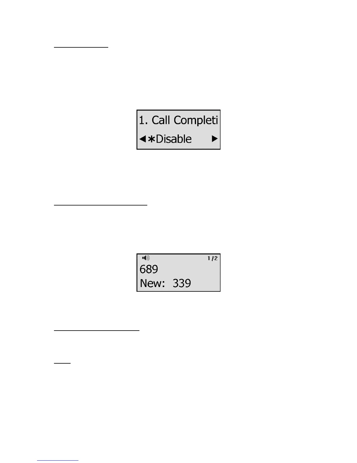 1) Press the following hot keys: MENU->Features->Call Completion to enter the