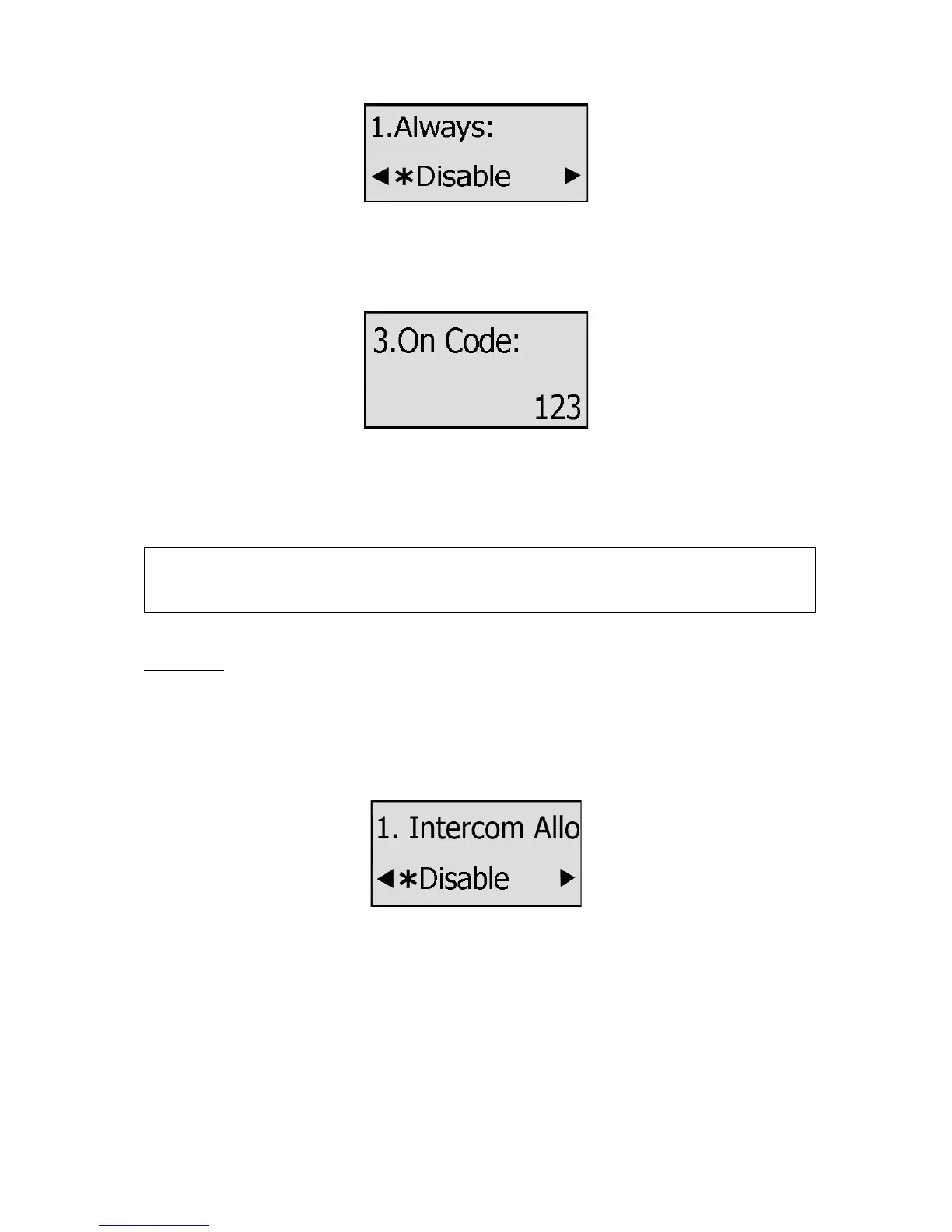 To configure Intercom option via phone interface: