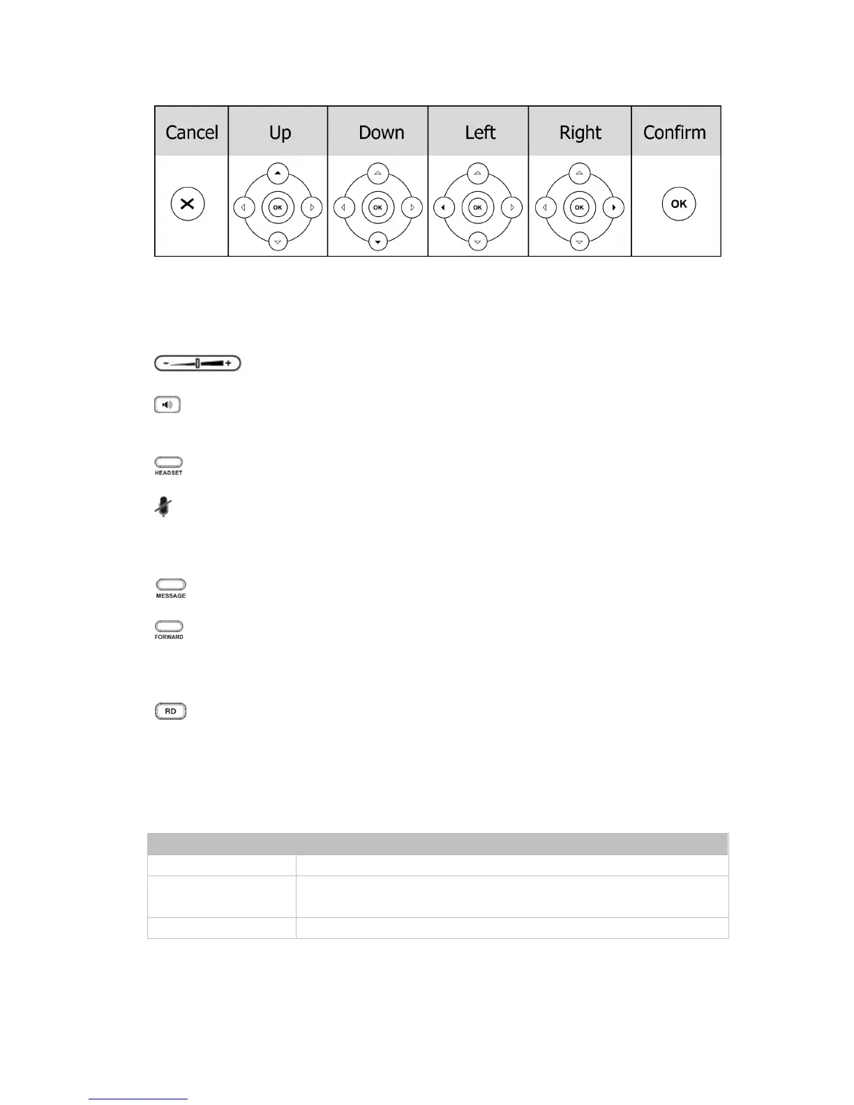 : Adjust the volume of the handset, headset, speaker and ring tone;