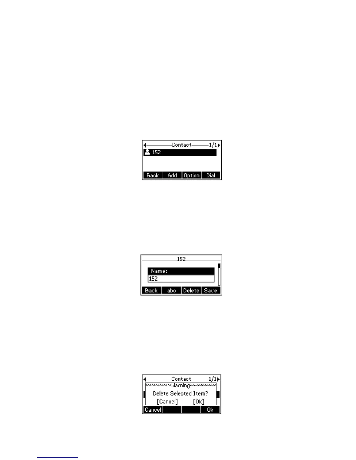 7) Press Save hot key to add the contact or Back hot key to cancel the change.