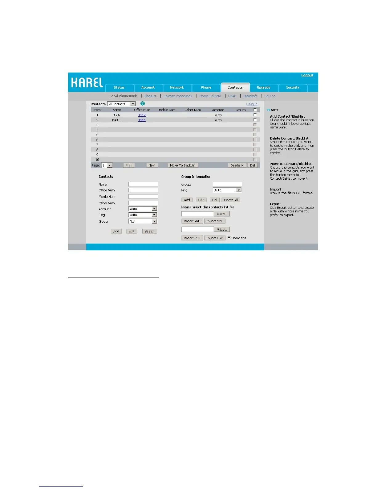 Choose Contacts->Local Phone BookPlease refer to the instruction above for the