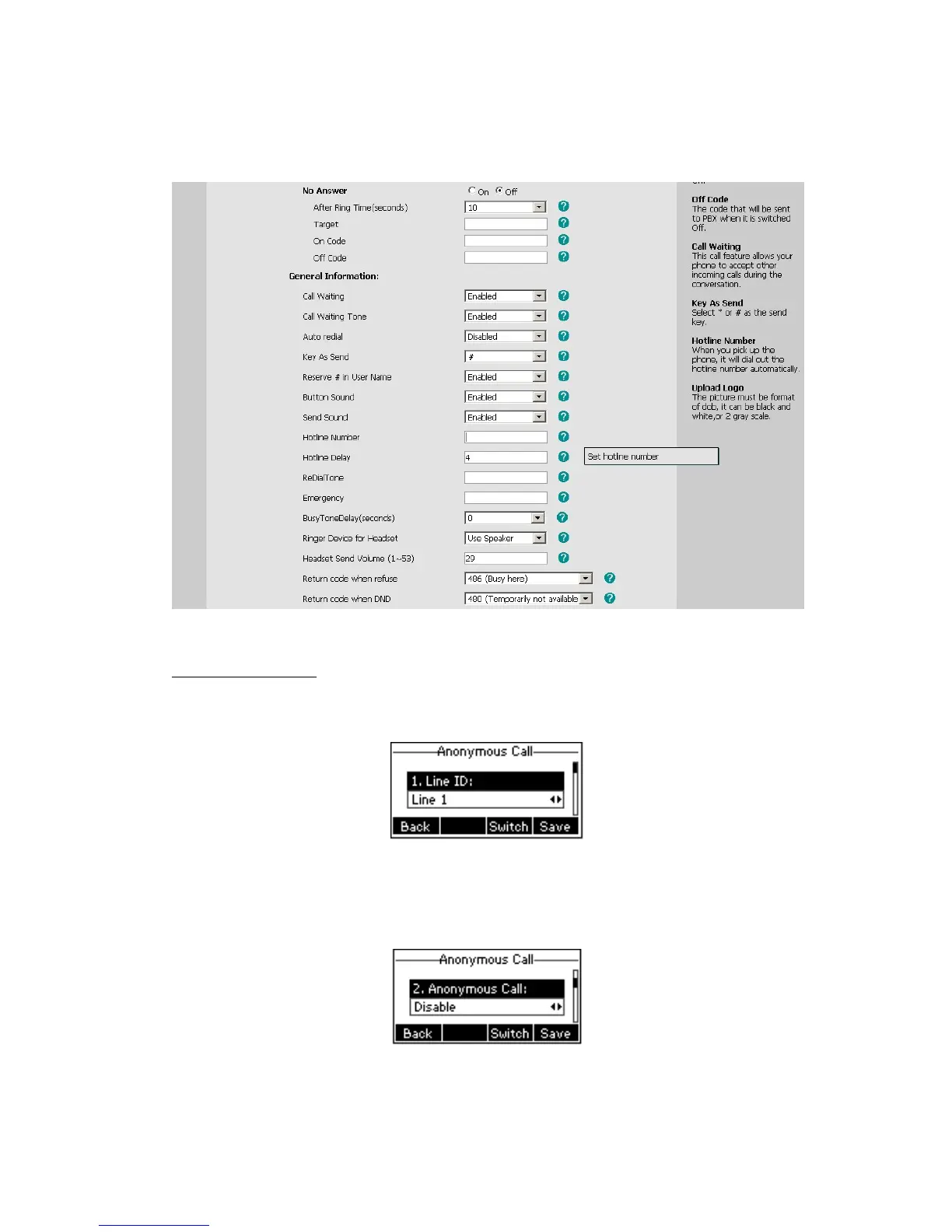 3) Press the navigation keys to enter and choose whether to enable the anonymous call