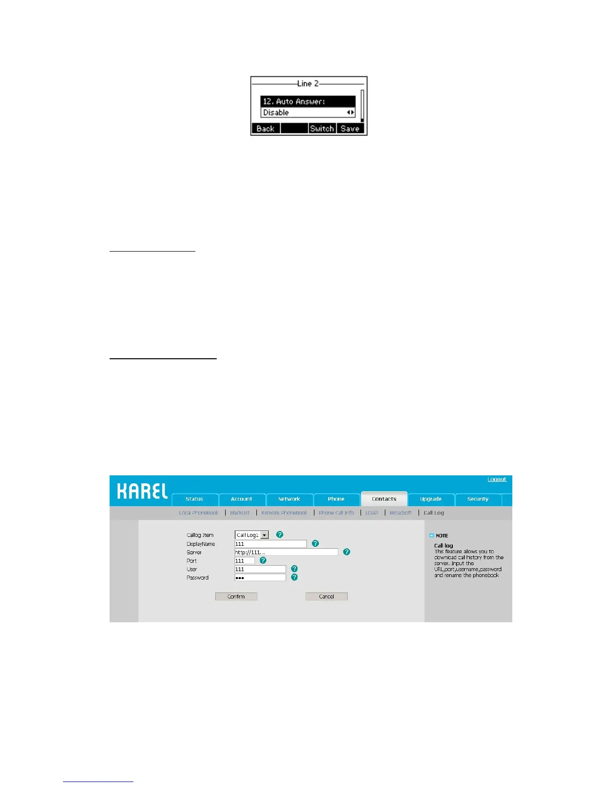 Configure Call Log via web interface: