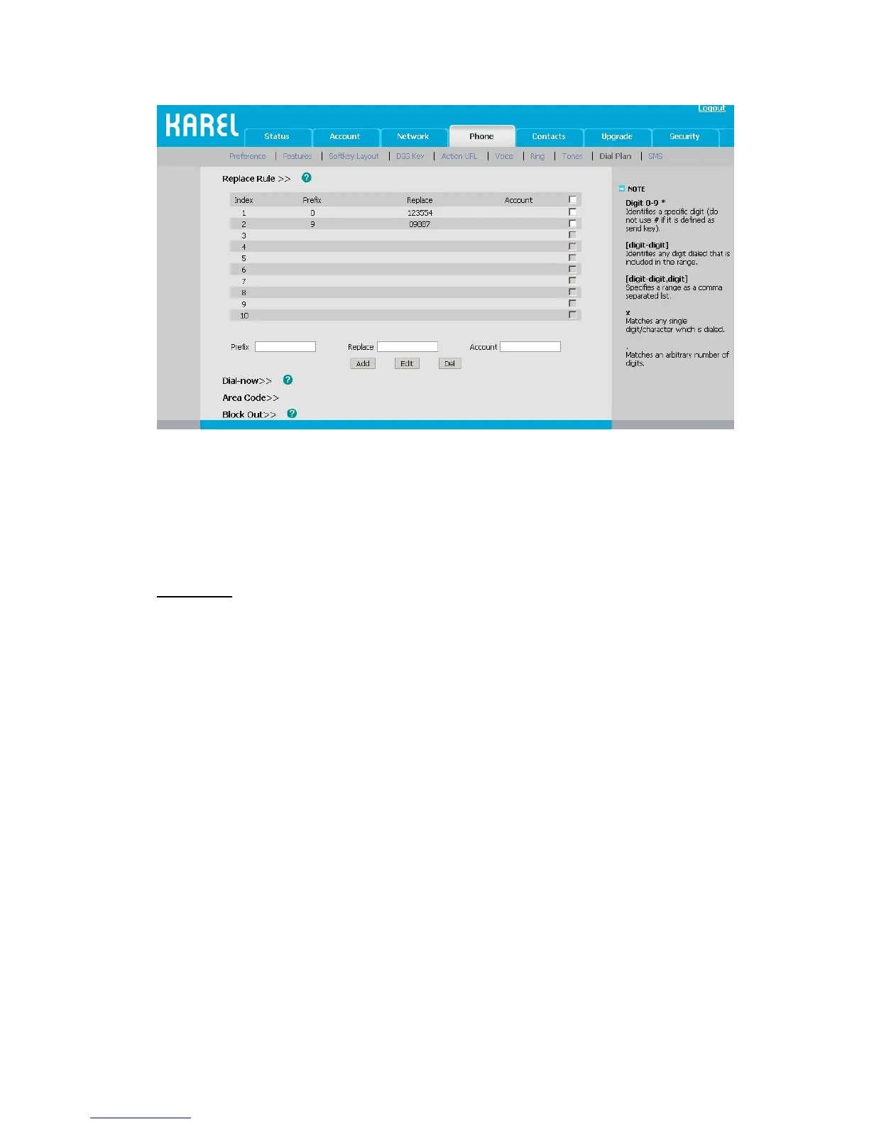 To set a Dial Plan via the Web interface: