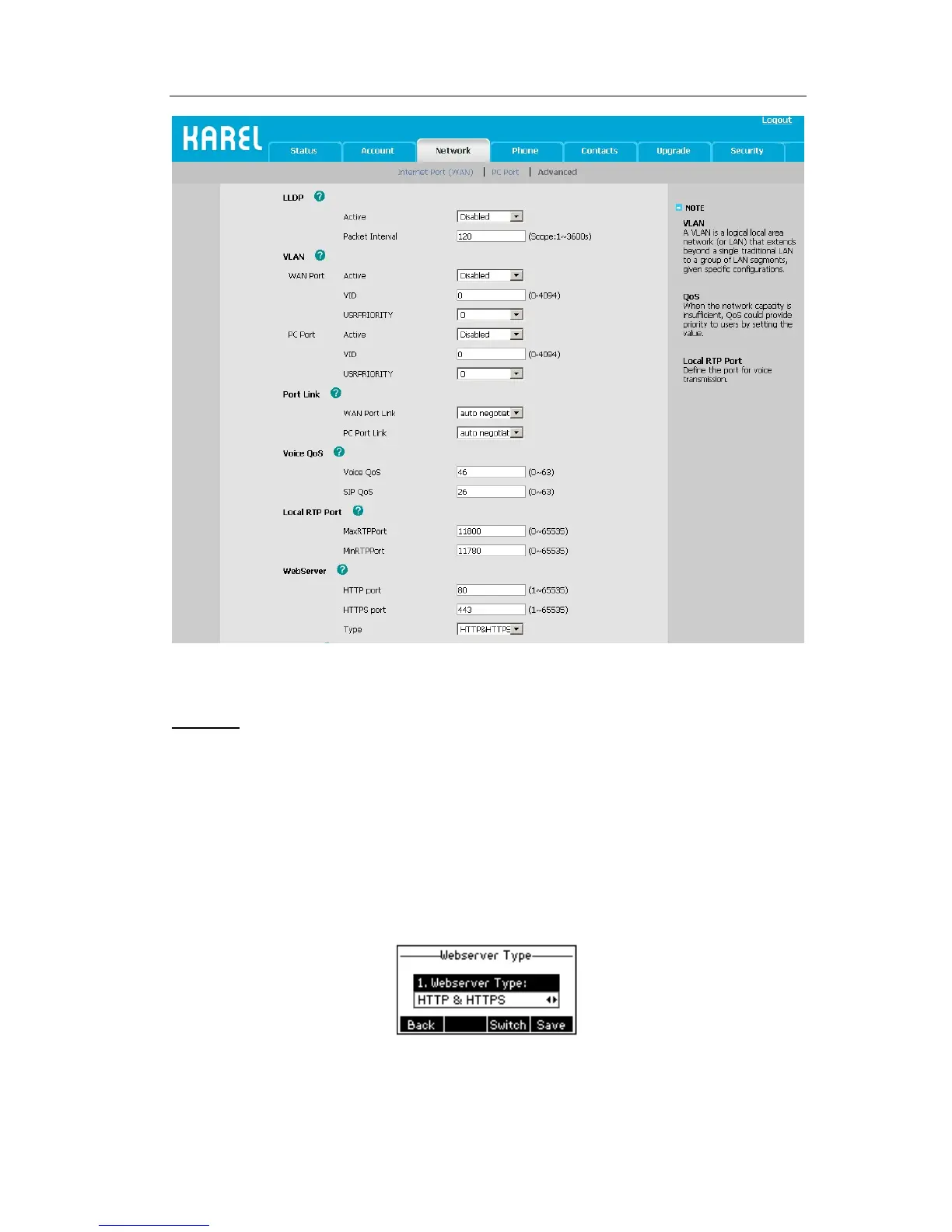 4) Press Save hot key to save the settings, or Back hot key to return to Webserver Type