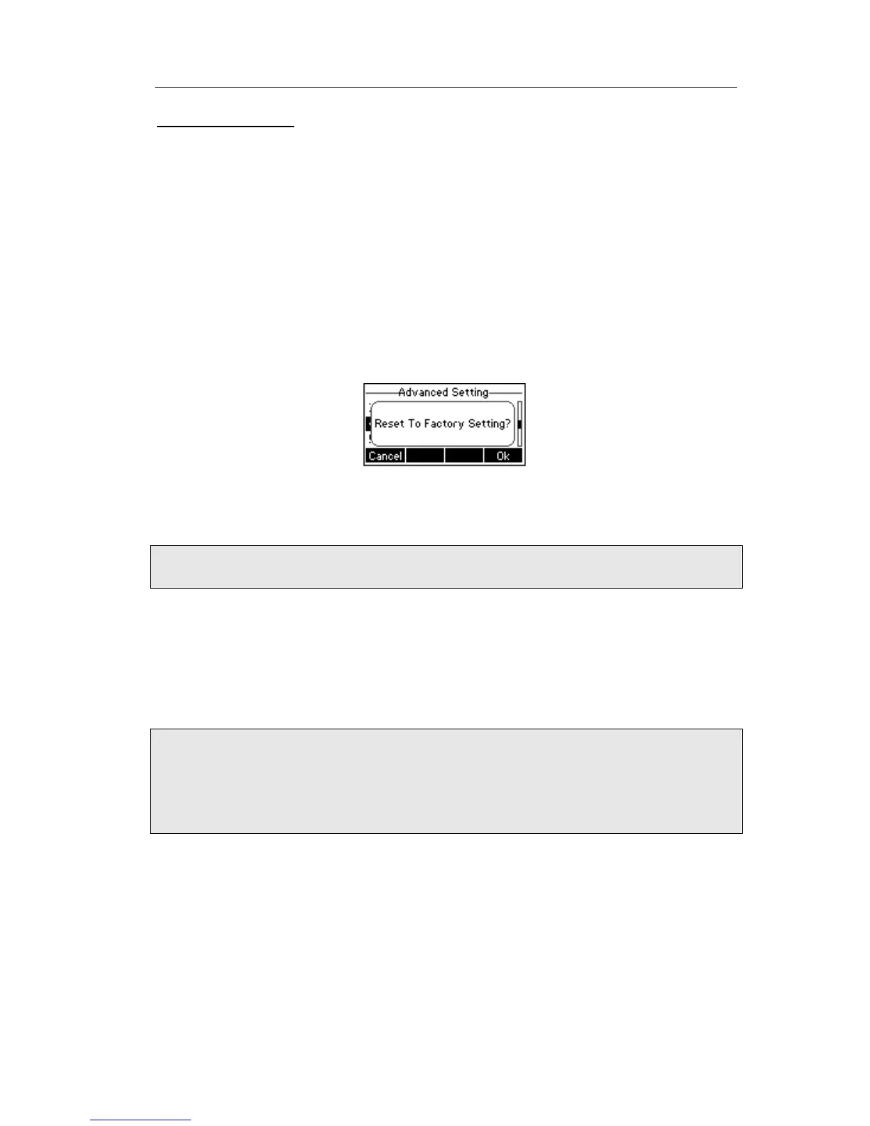 4) You are prompted to confirm the change, press OK hot key to reset to factory settings,