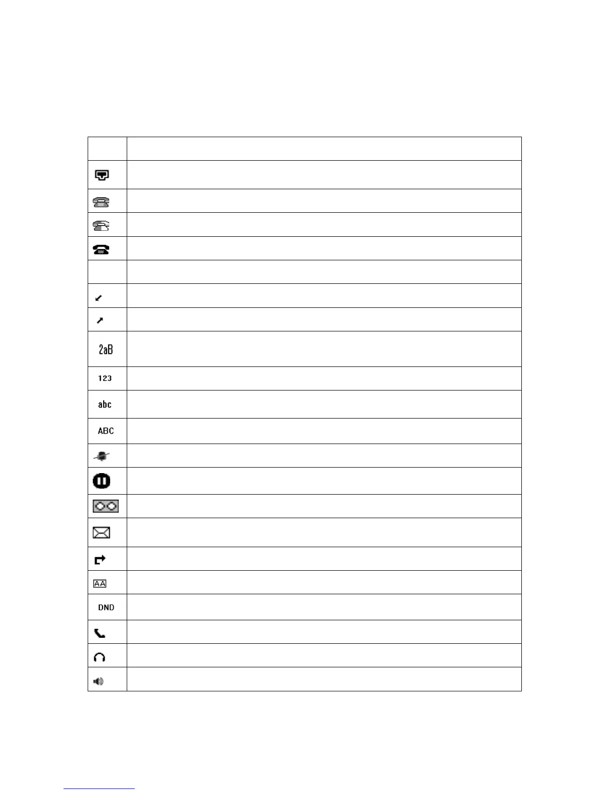The IP Phone displays different kinds of icons on its LCD, you can refer to the following table