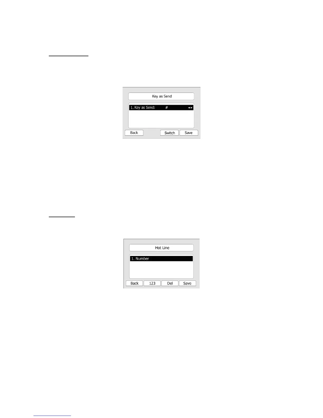 1) Press MENU->Features->Hot Line-> Enter to enter the configuration page.