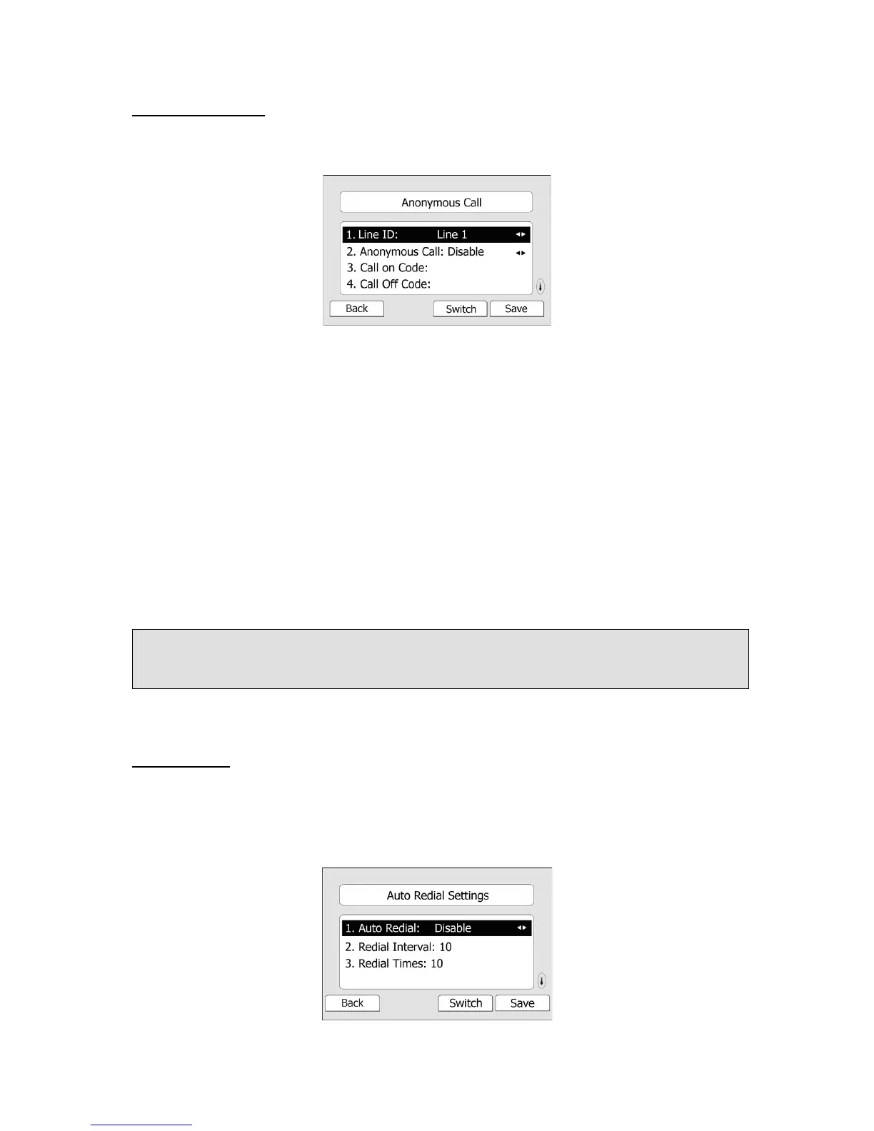 and Call Off Code. When you choose to enable the anonymous call function on your IP