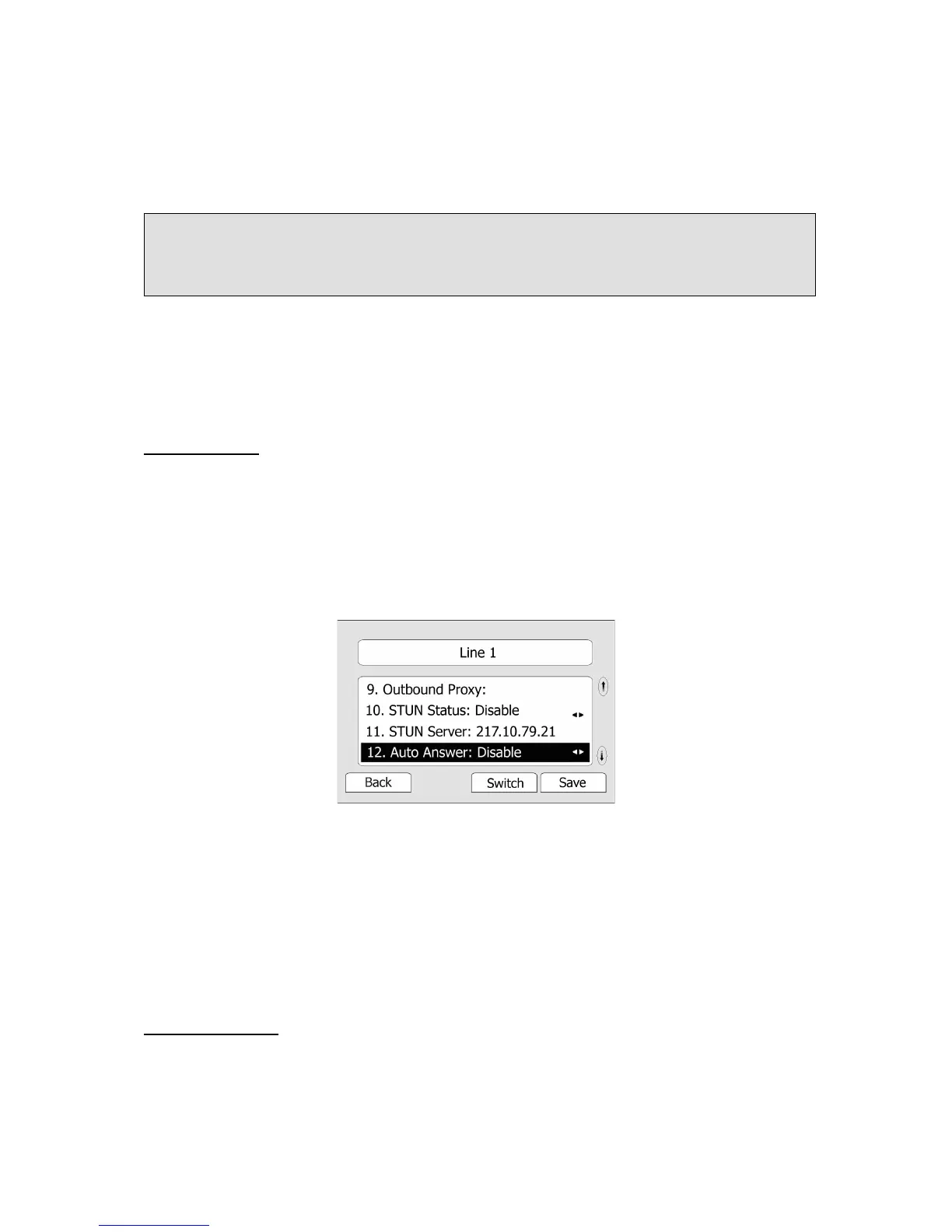 1) Press MENU->Settings->Advanced Settings ->Accounts-> Line X, use the navigation keys