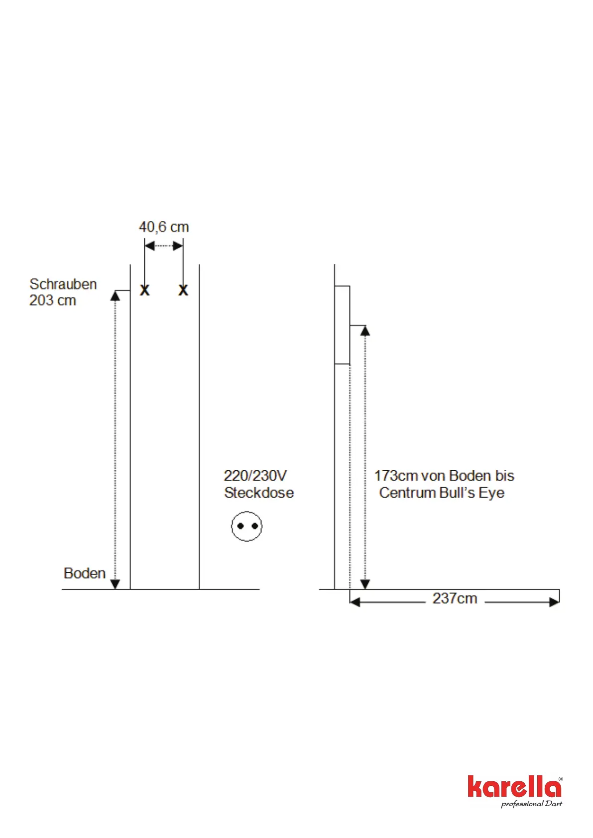 be mounted. Ensure that the screws are screwed in as straight as possible so that the dartboard hangs straight