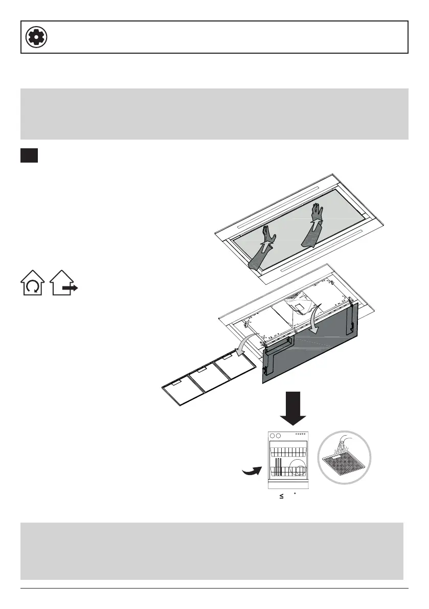 Aluminium filters: To avoid fires, clean thoroughly once a month. Remove both grease filters as shown and soak in