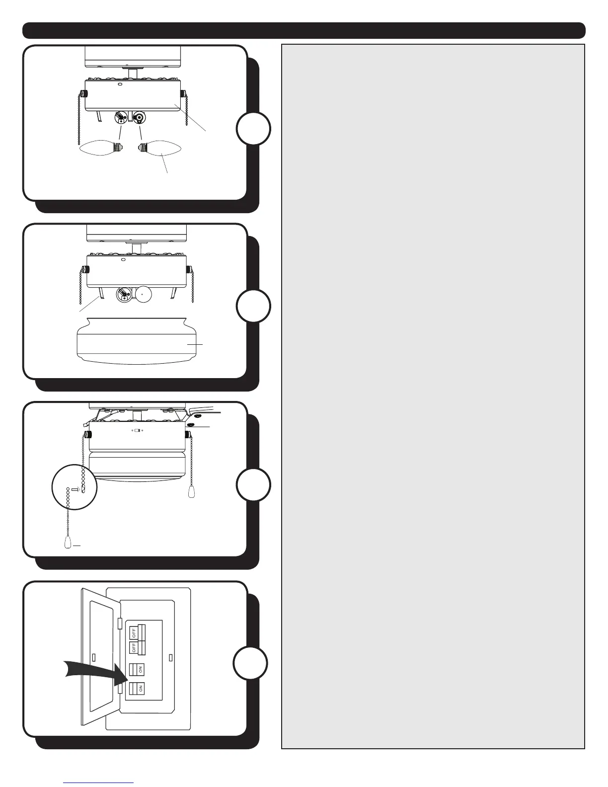 13. Install candelabra-base bulbs (40W max.) into the