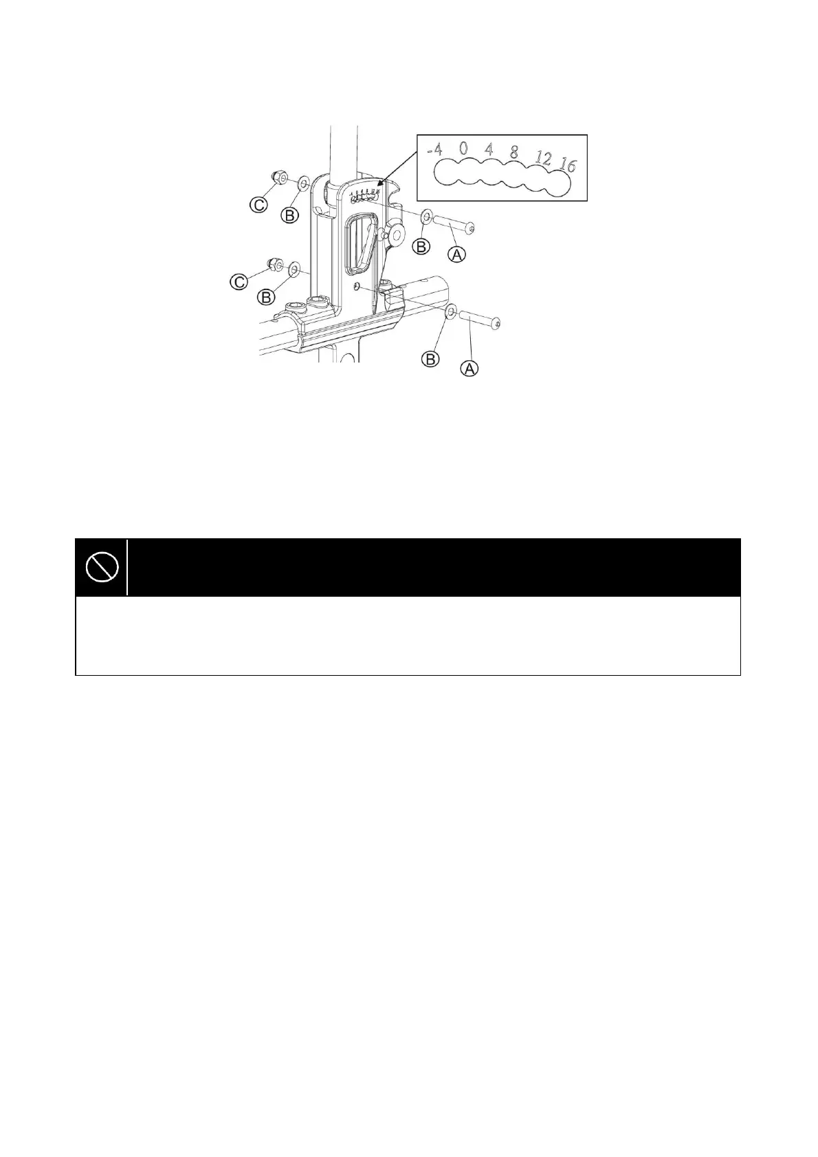 ● Loosen bolt A and nut B. Remove the arc washers C.