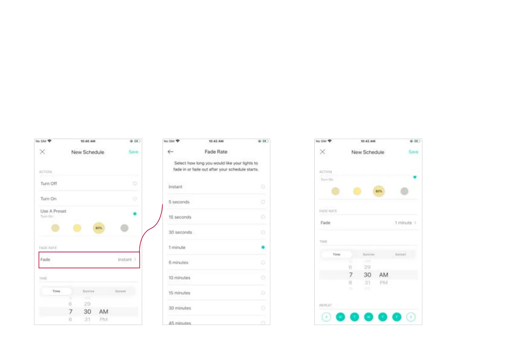 4. Set fade rate, i.e., how long you would like your light to fade in or fade out after