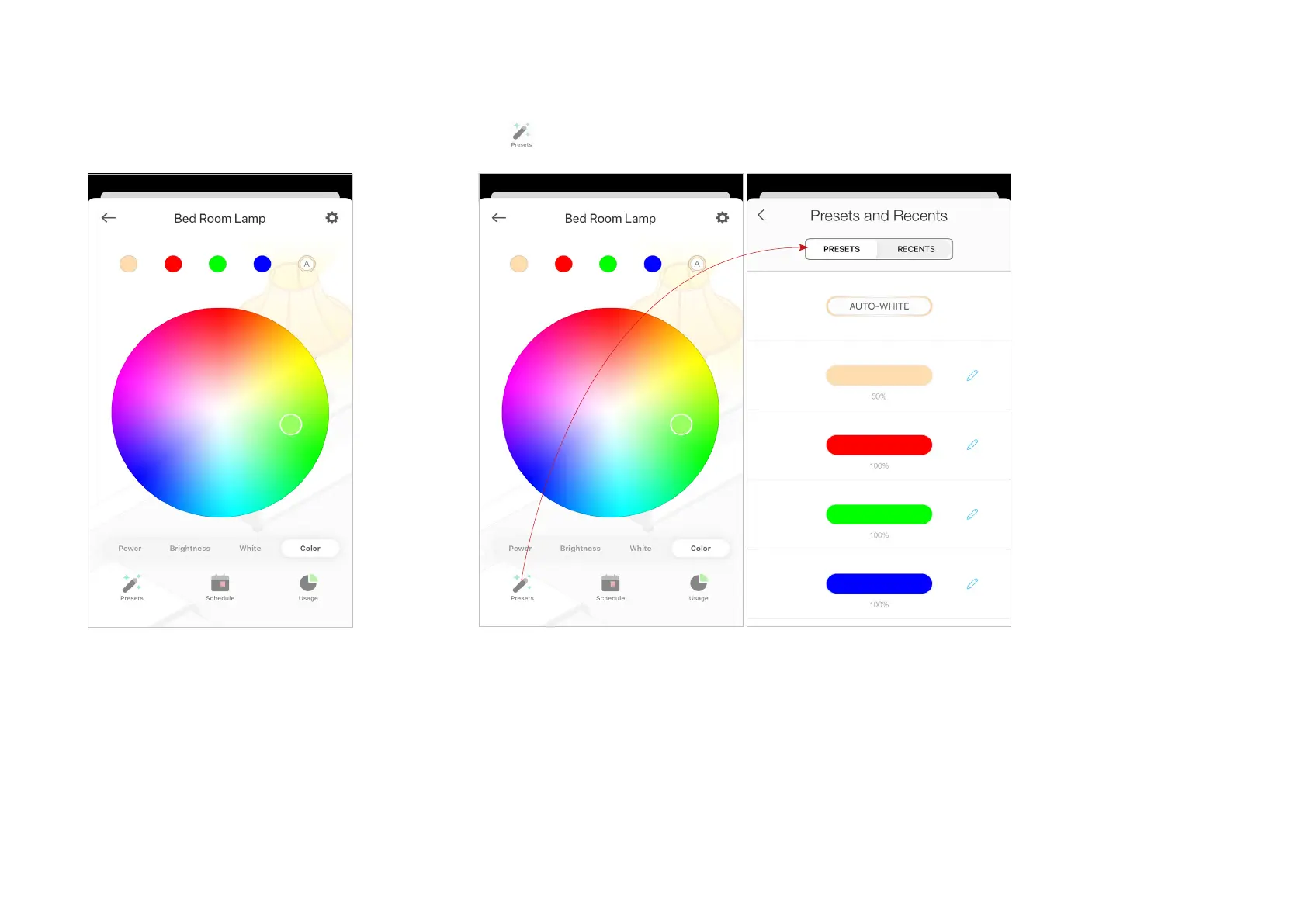 Tap to customize presets and apply what you have set recently to your smart bulb.