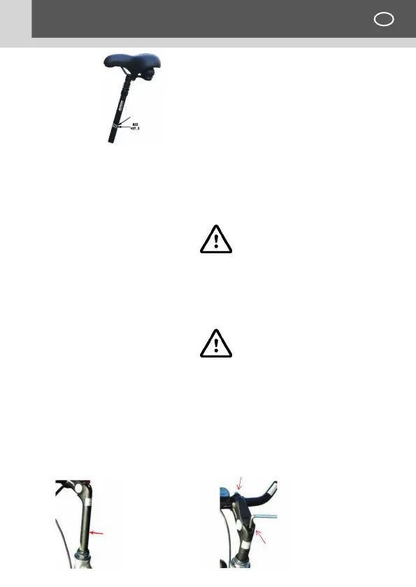 MAI essere visibile. Se l’altezza del manubrio supera il limite indicato,