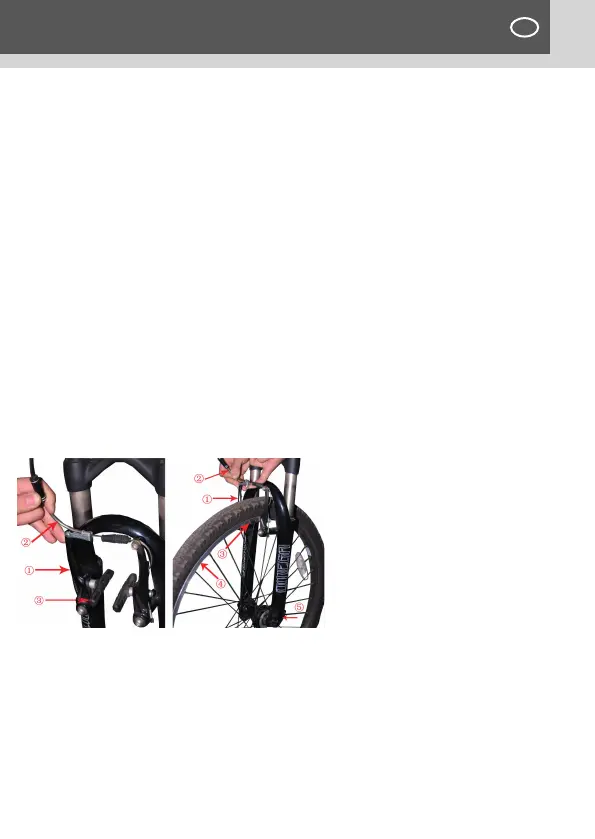 frein V brake tube pour sortir du frein V brake, et mettez l’axe de la roue