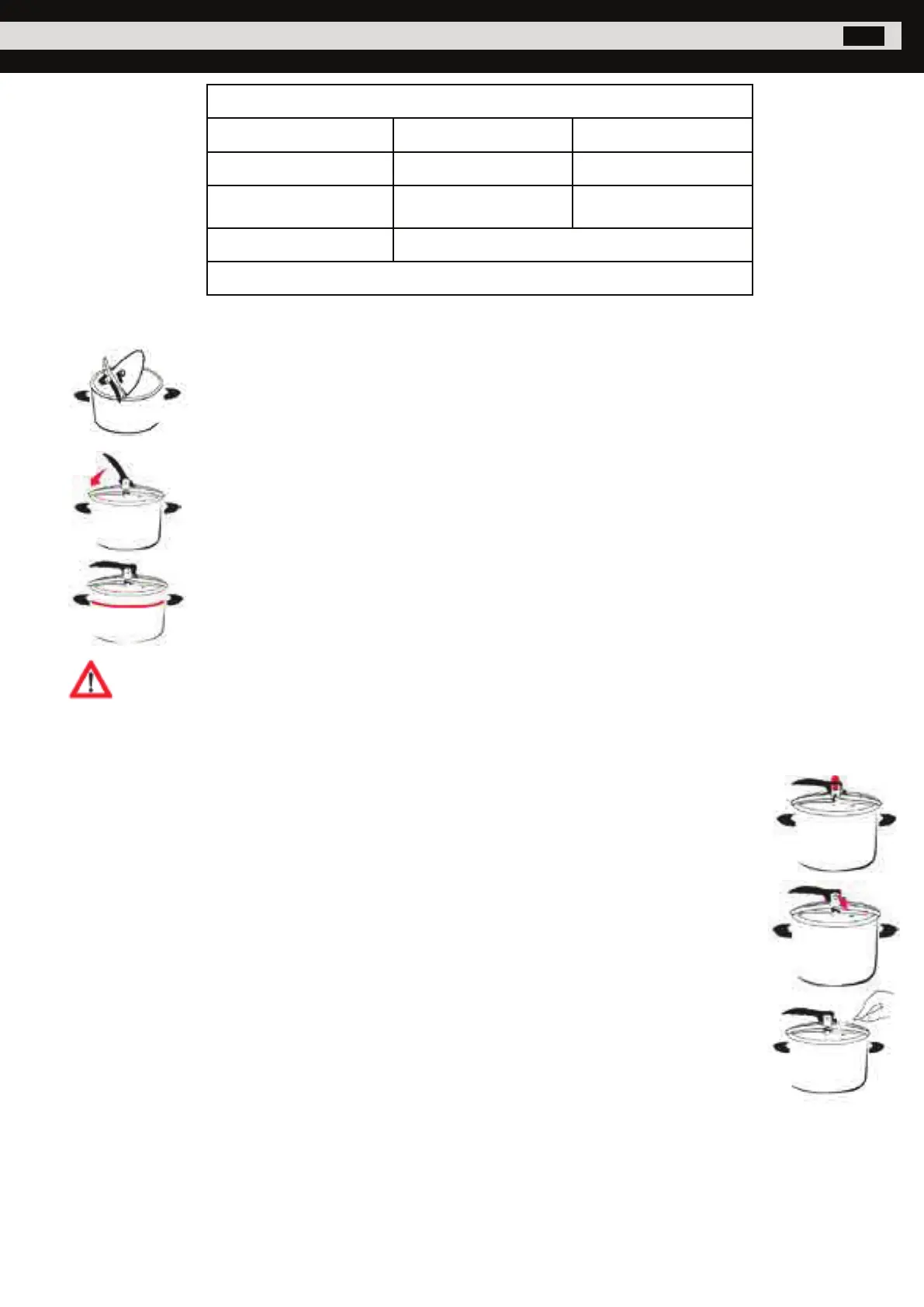 Placer l’autocuiseur sur un feu puissant. Mettre la valve de cuisson en position “droite” comme sur