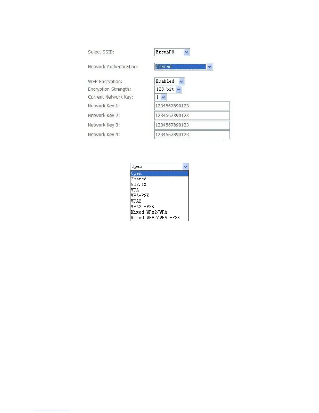 WEP open and WEP shared —WEP is an encryption scheme that is used