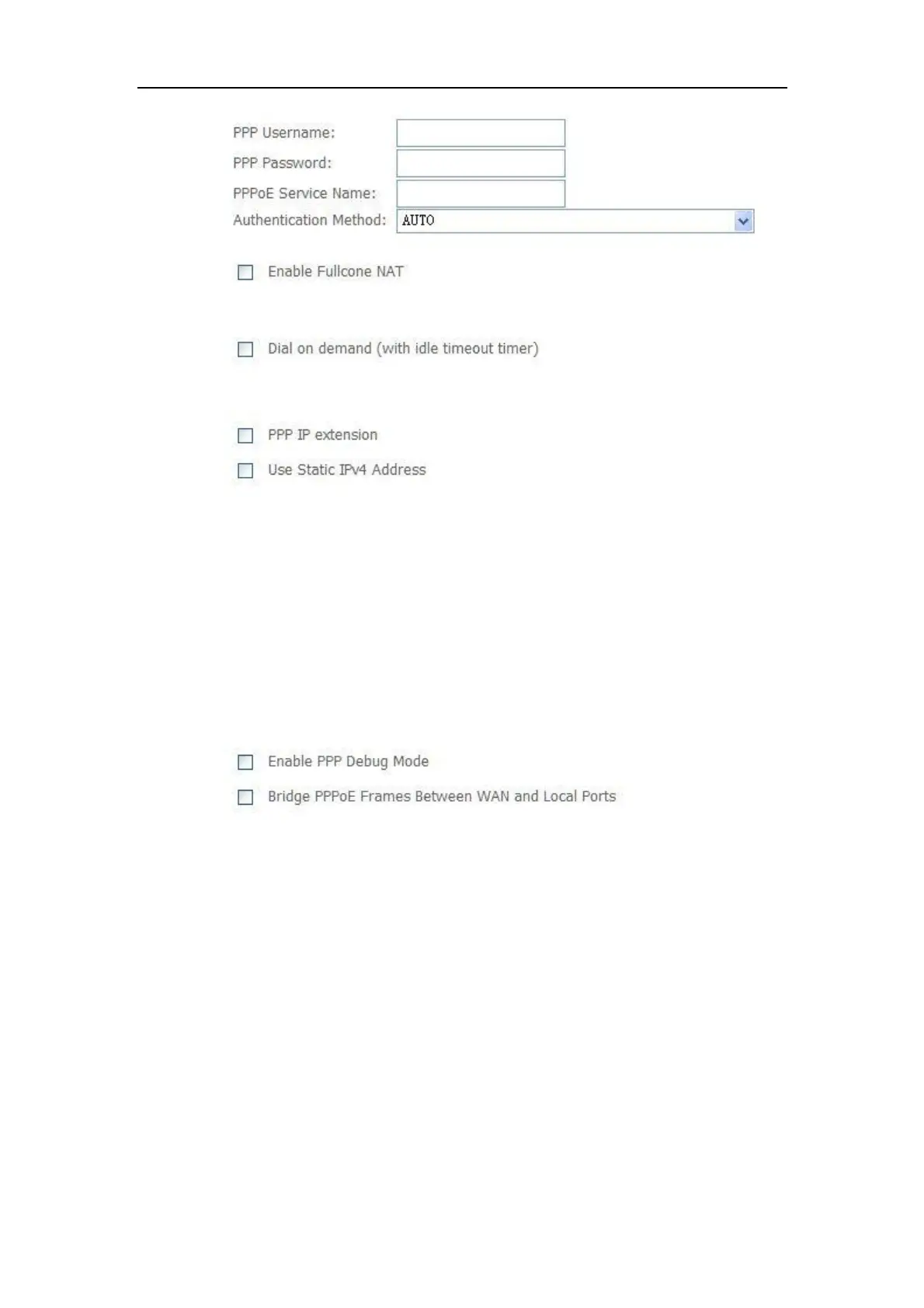 Authentication method in Auto, however, you may select PAP or CHAP if