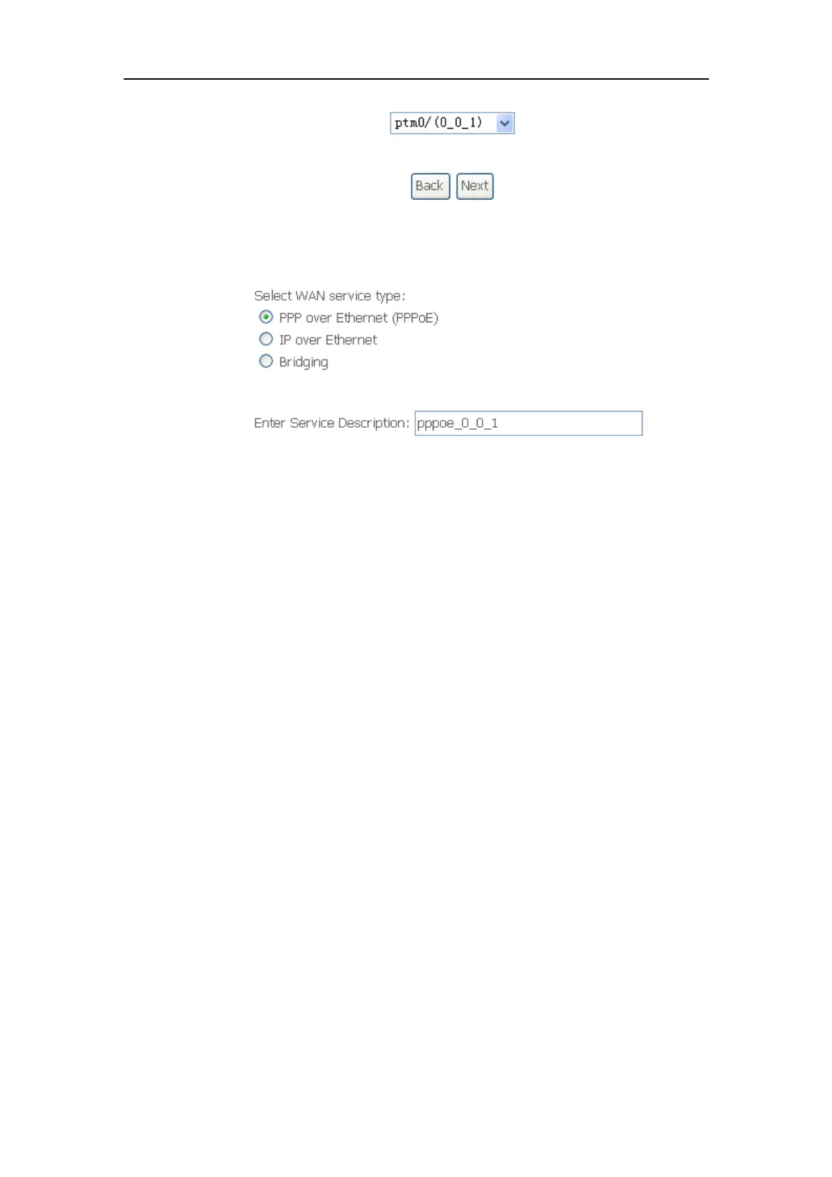 5. Choose WAN service type, just choose PPPoE for example here. You can