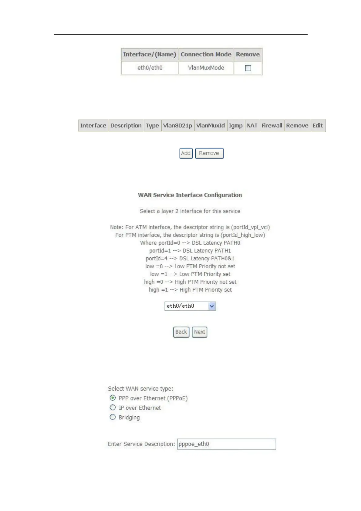 7. Click Next and youll see the following screen. Select PPPoE as WAN service