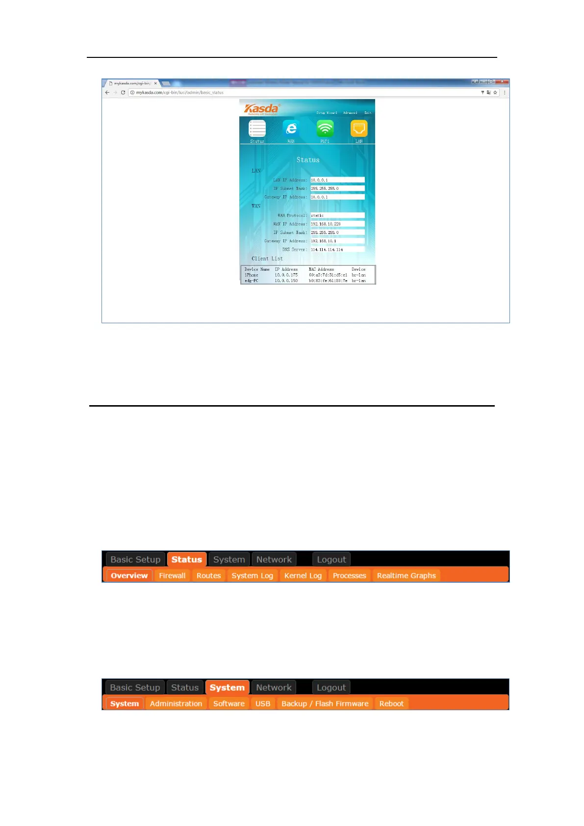 System, Administration, Software, USB, Backup / Flash Firmware and Reboot.